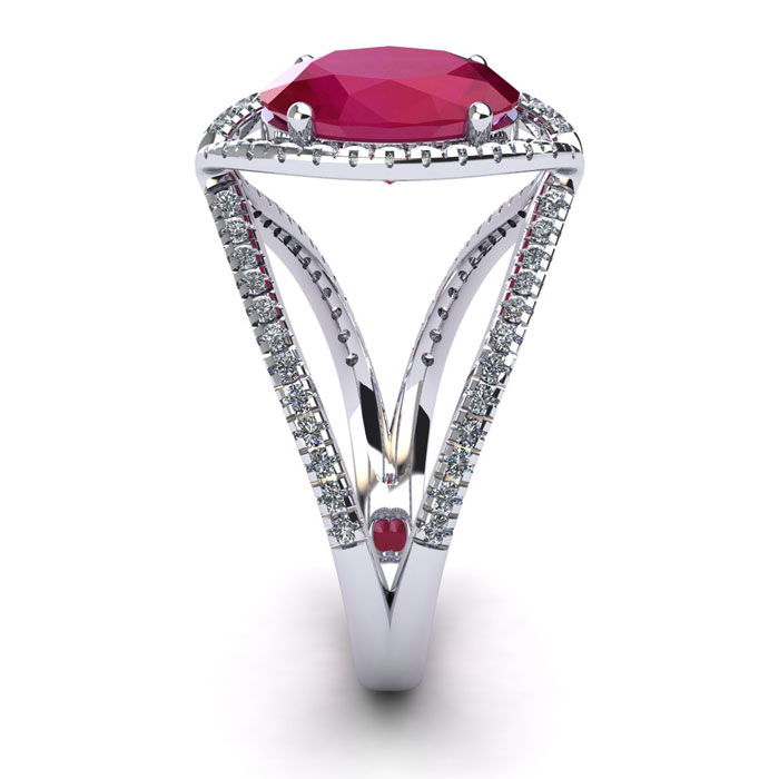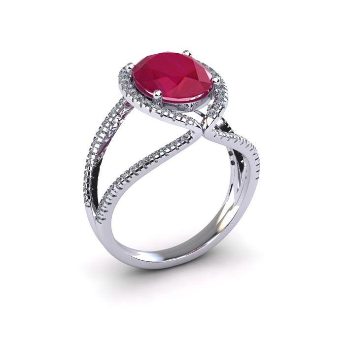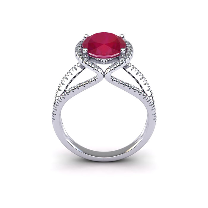 Retrograde Birthstones™ 2 Carat Oval Shape Ruby and Halo Diamond Ring In 14 Karat White Gold