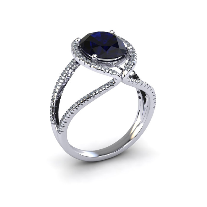 2 Carat Oval Shape Sapphire and Halo Diamond Ring In 14 Karat White Gold