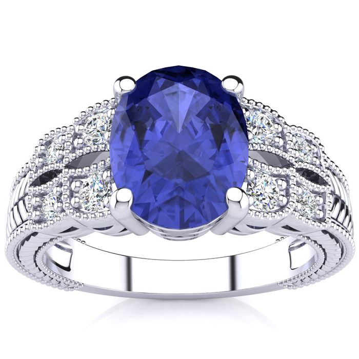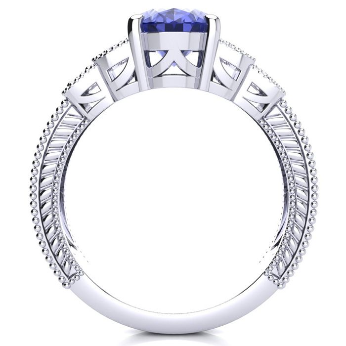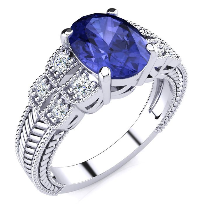 2 Carat Oval Shape Tanzanite and Diamond Ring In 10 Karat White Gold