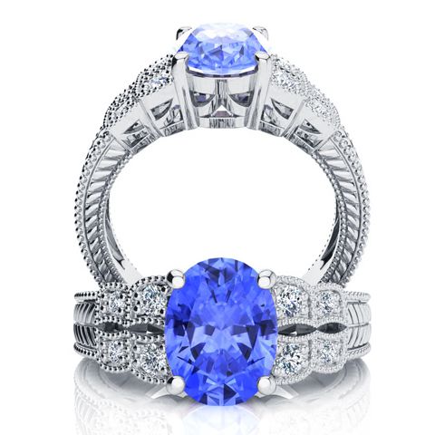 2 Carat Oval Shape Tanzanite and Diamond Ring In 10 Karat White Gold