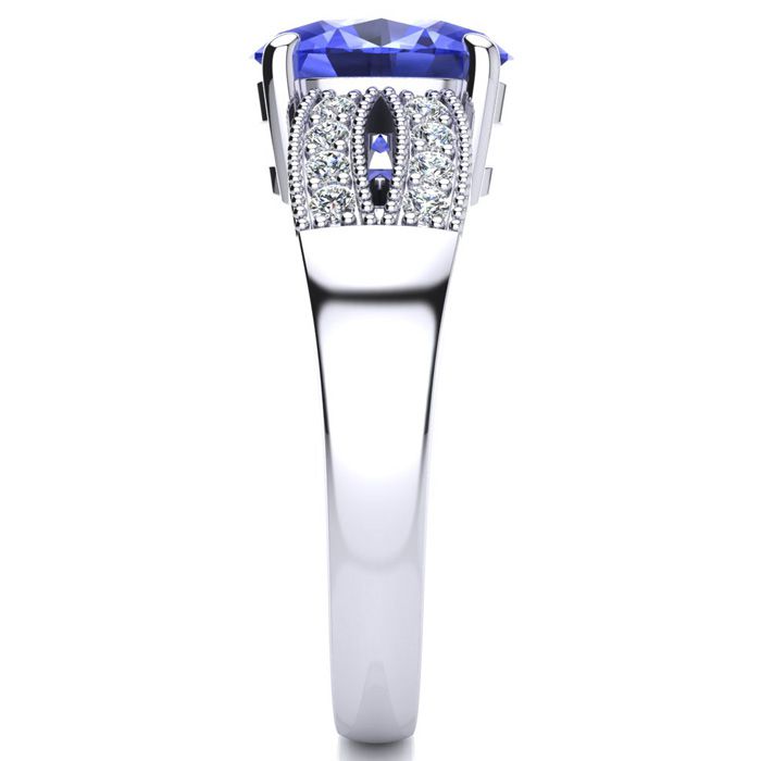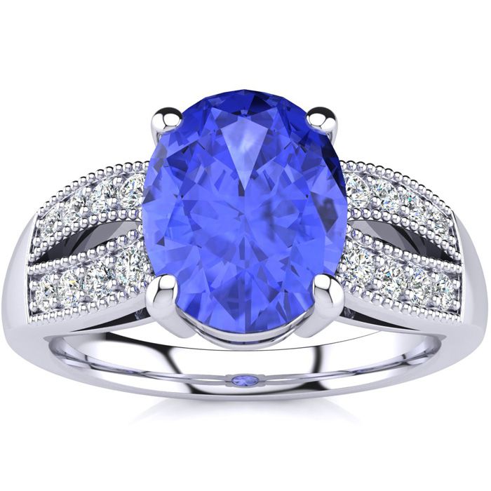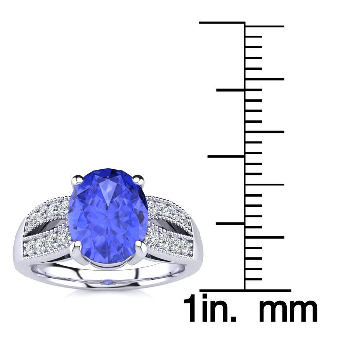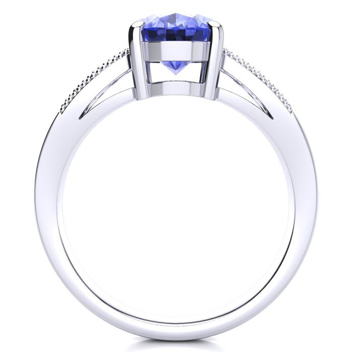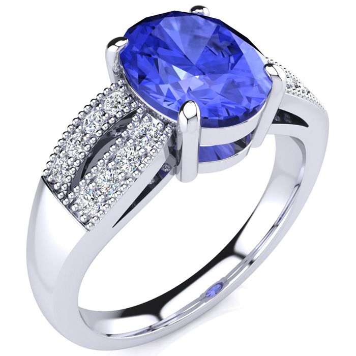 2 Carat Oval Shape Tanzanite and Diamond Ring In 14 Karat White Gold