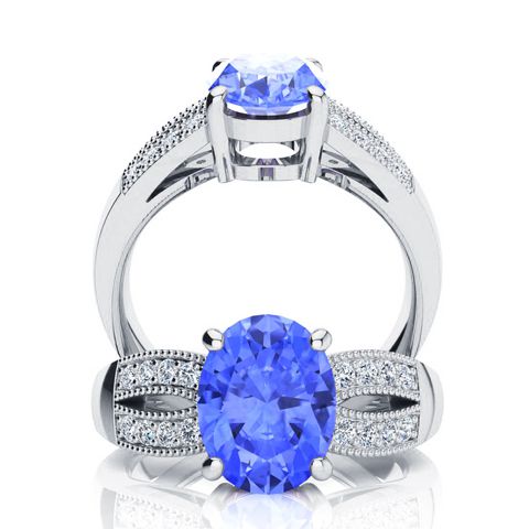 2 Carat Oval Shape Tanzanite and Diamond Ring In 14 Karat White Gold