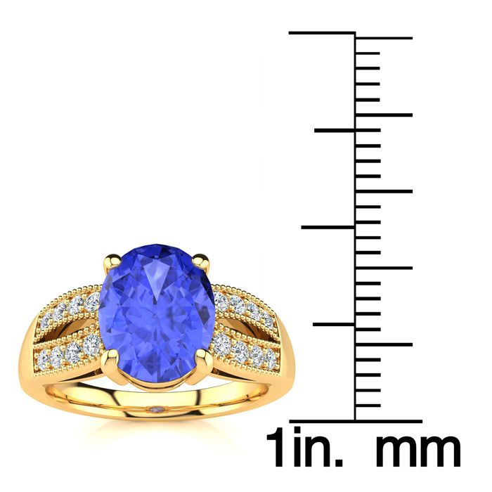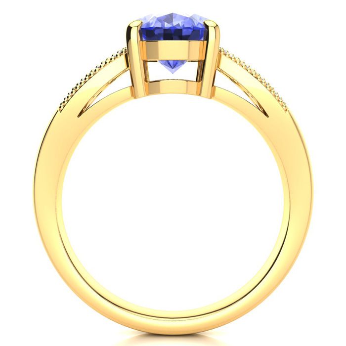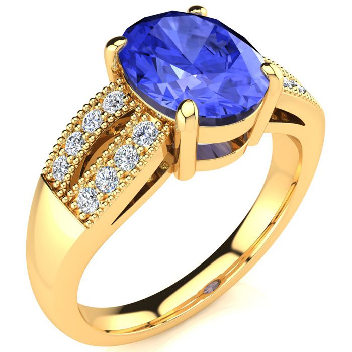 2 Carat Oval Shape Tanzanite and Diamond Ring In 14 Karat Yellow Gold