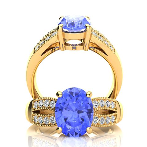 2 Carat Oval Shape Tanzanite and Diamond Ring In 14 Karat Yellow Gold