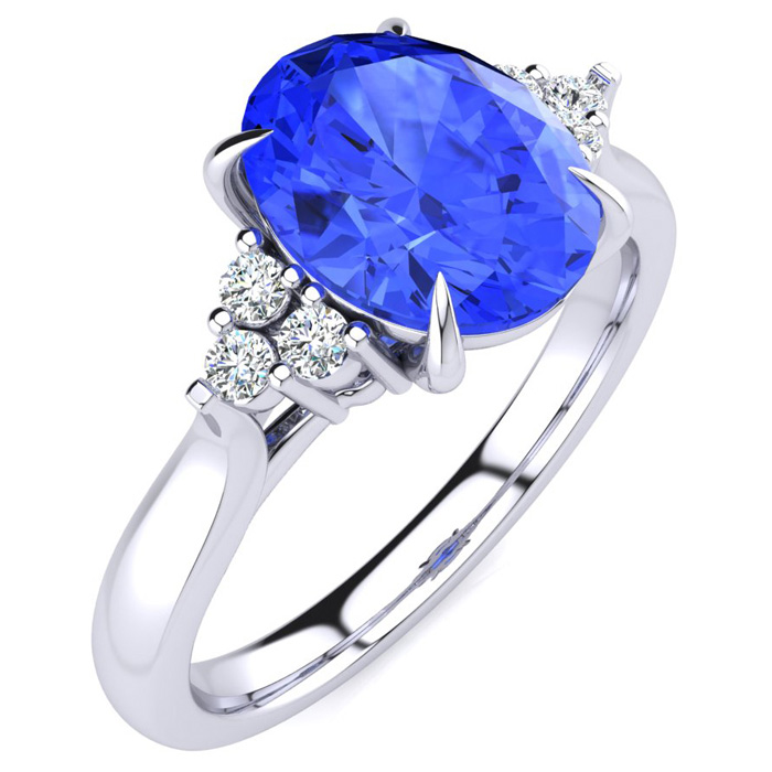 2 Carat Oval Shape Tanzanite and Diamond Ring In 14K White Gold