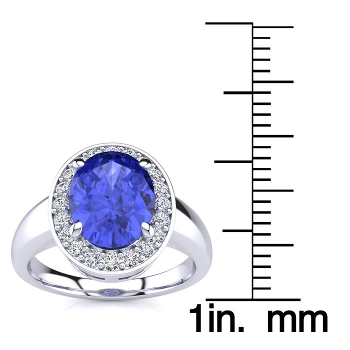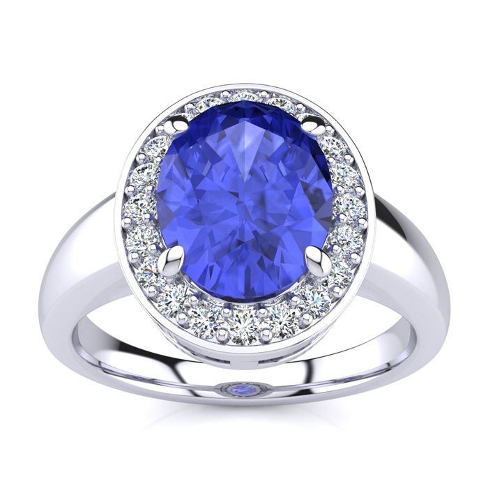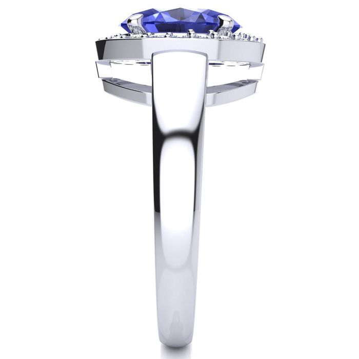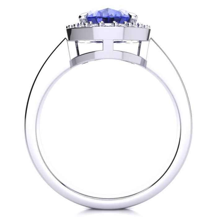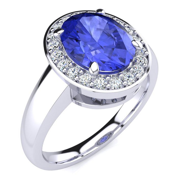 2 Carat Oval Shape Tanzanite and Halo Diamond Ring In 14 Karat White Gold