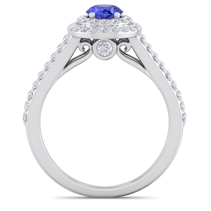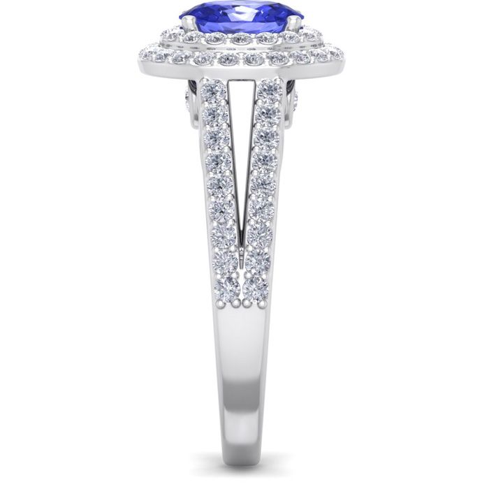2 Carat Oval Shape Tanzanite and Halo Diamond Ring In 14 Karat White Gold