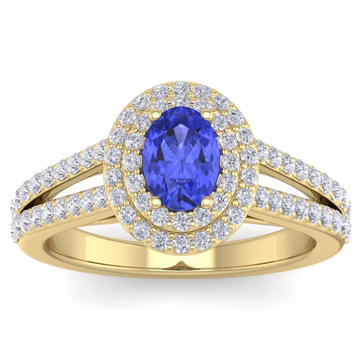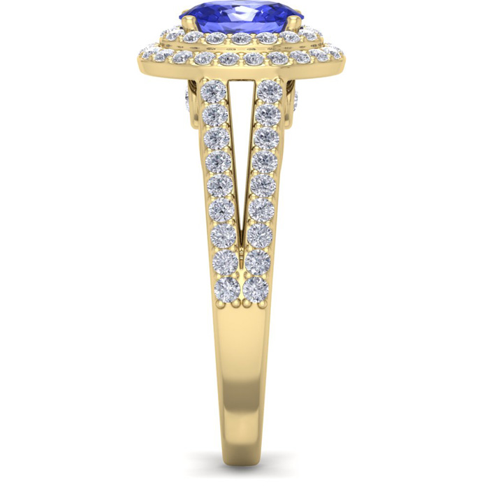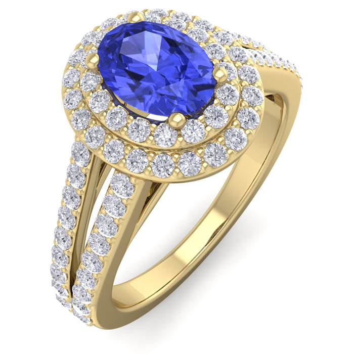 2 Carat Oval Shape Tanzanite and Halo Diamond Ring In 14 Karat Yellow Gold