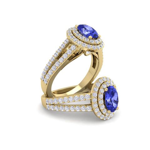 2 Carat Oval Shape Tanzanite and Halo Diamond Ring In 14 Karat Yellow Gold