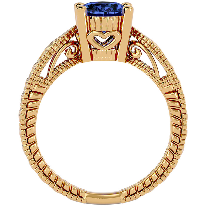 2 Carat Oval Shape Tanzanite Ring With Tapered Etched Band In 14 Karat Yellow Gold