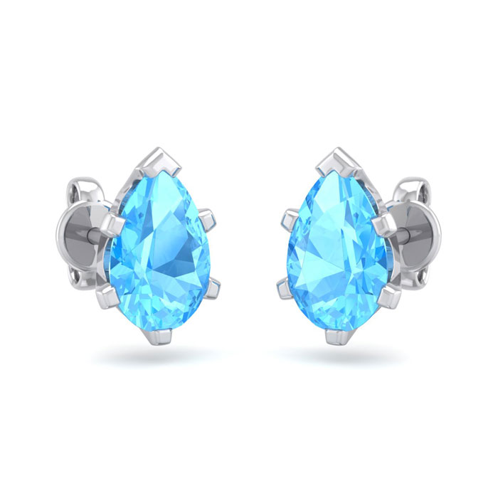 2 Carat Pear Shape Blue Topaz Stud Earrings In Sterling Silver