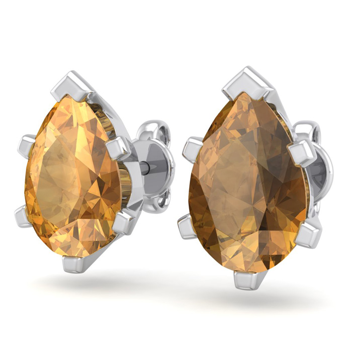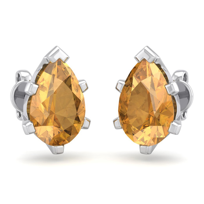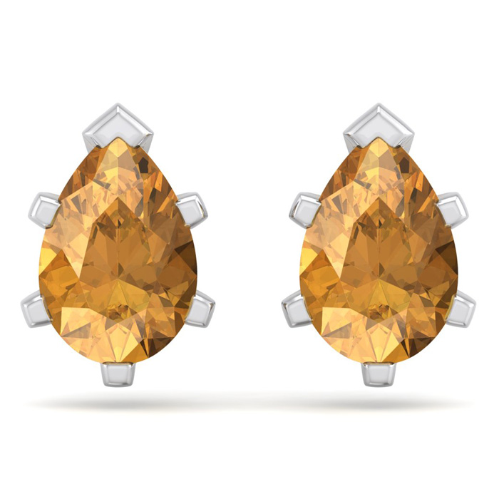 2 Carat Pear Shape Citrine Stud Earrings In Sterling Silver