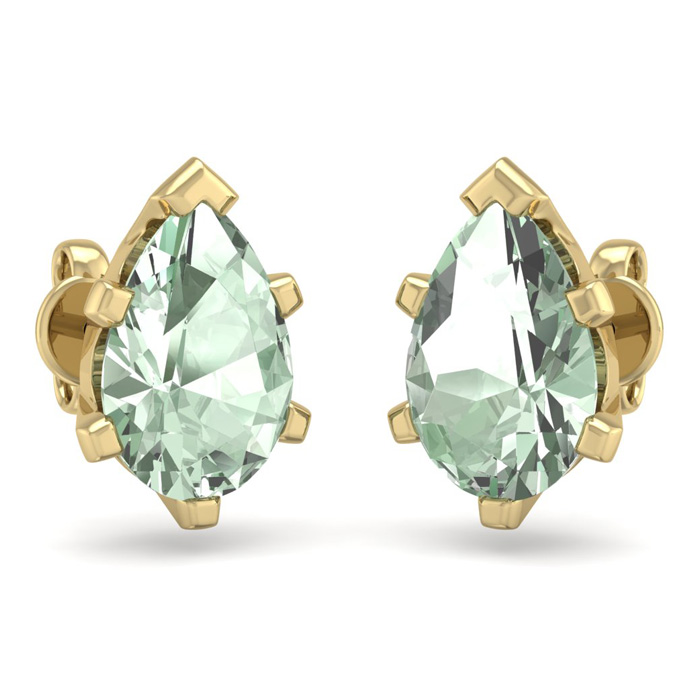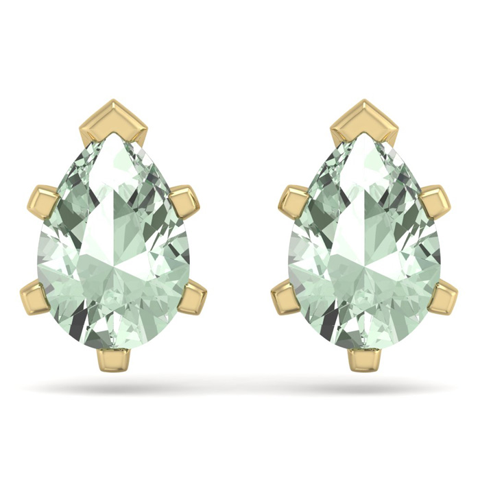 2 Carat Pear Shape Green Amethyst Stud Earrings In 14K Yellow Gold Over Sterling Silver