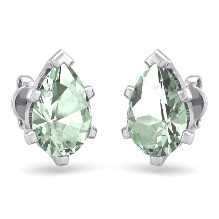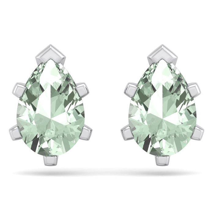 2 Carat Pear Shape Green Amethyst Stud Earrings In Sterling Silver