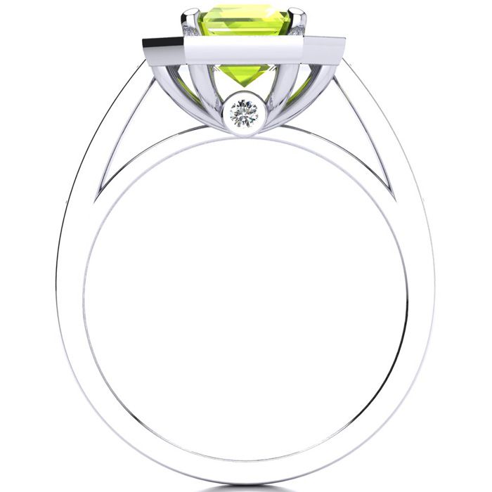 2 Carat Peridot and Halo Diamond Ring In 14 Karat White Gold