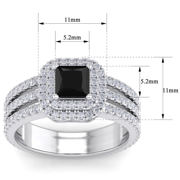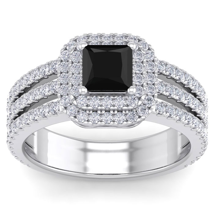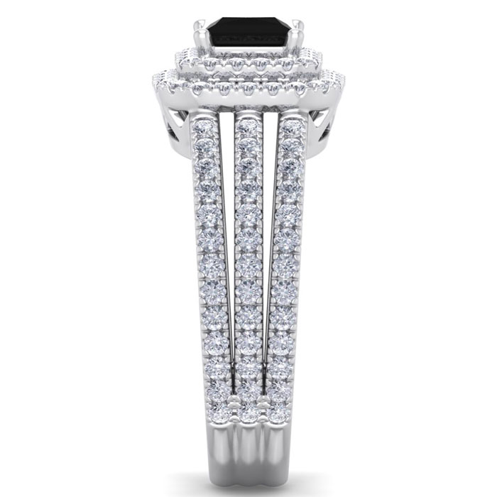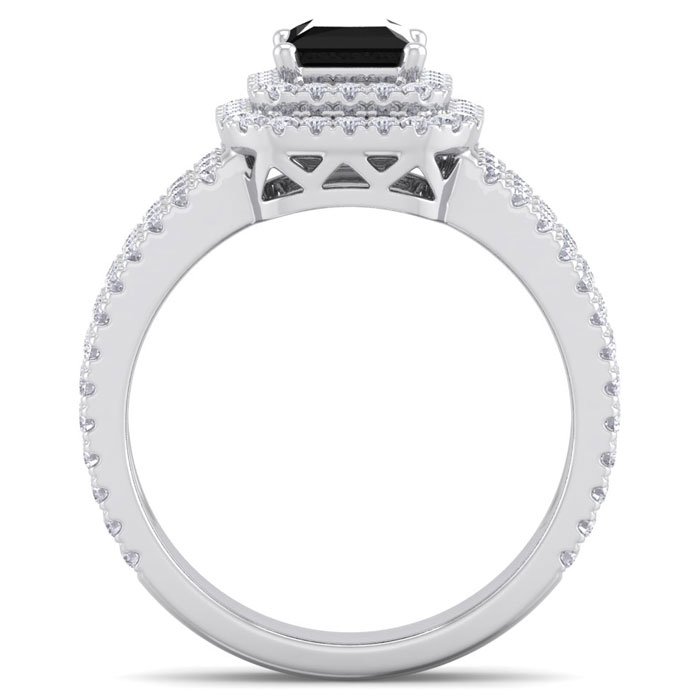 2 Carat Princess Shape Double Halo Black and White Diamond Engagement Ring In 14 Karat White Gold