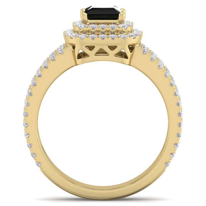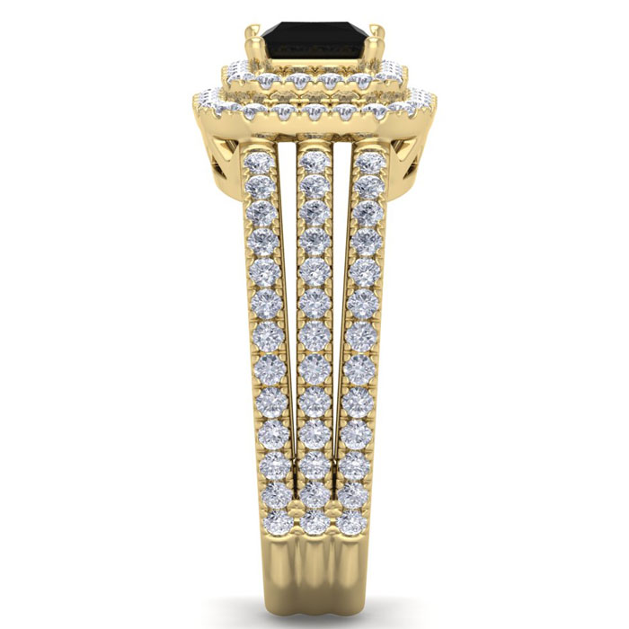 2 Carat Princess Shape Double Halo Black and White Diamond Engagement Ring In 14 Karat Yellow Gold