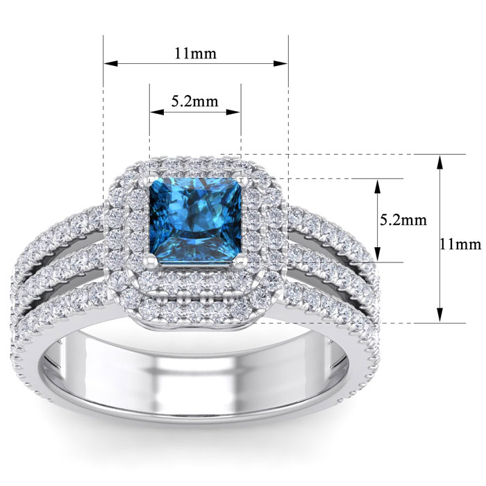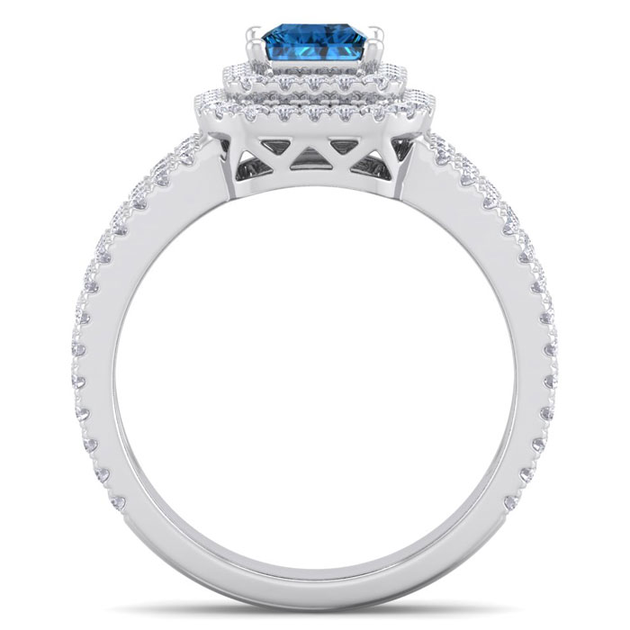2 Carat Princess Shape Double Halo Blue and White Diamond Engagement Ring In 14 Karat White Gold
