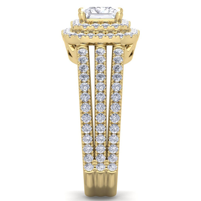 2 Carat Princess Shape Double Halo Diamond Engagement Ring In 14 Karat Yellow Gold