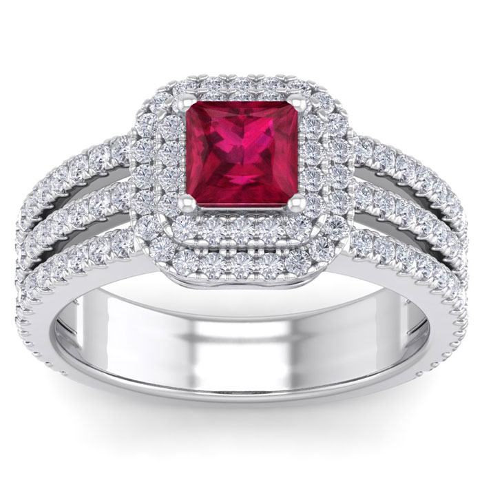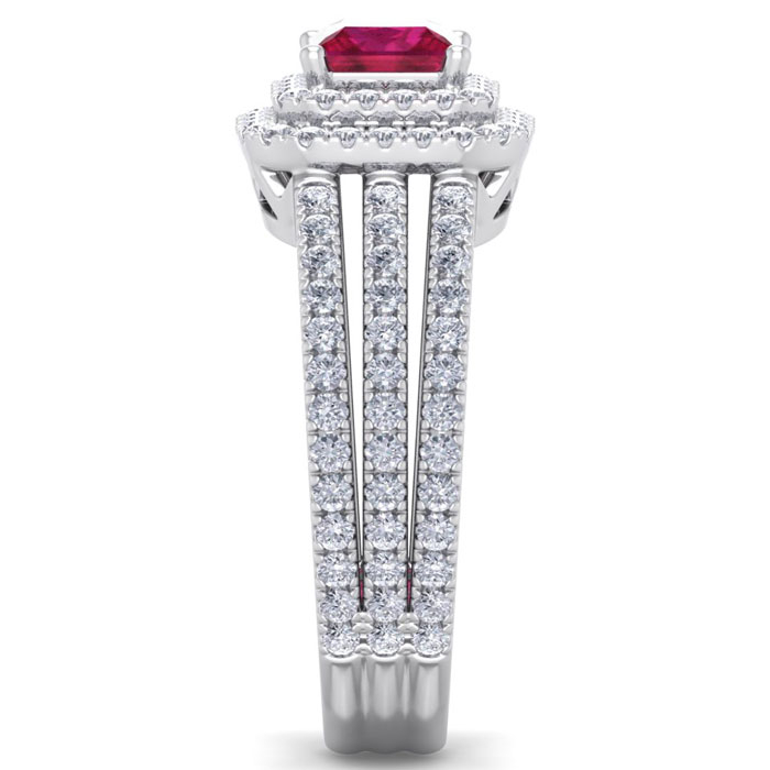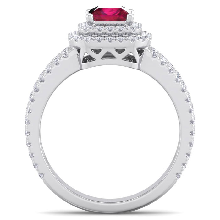 2 Carat Princess Shape Double Halo Ruby and Diamond Engagement Ring In 14 Karat White Gold