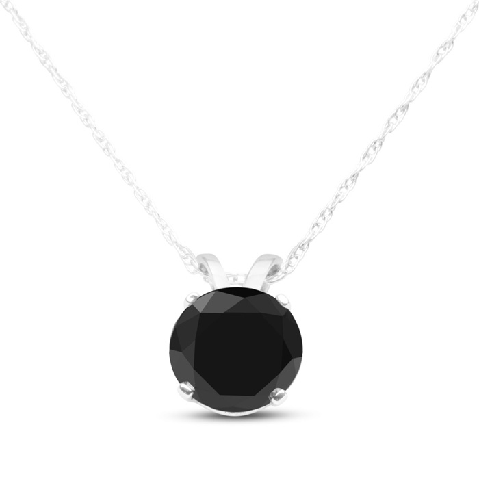 2 Carat Round Brilliant Black Moissanite Necklace in 14 Karat White Gold