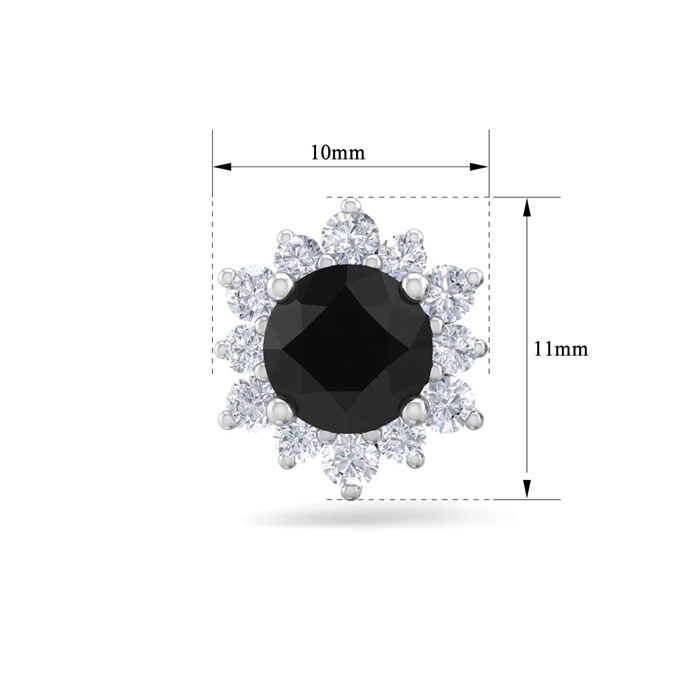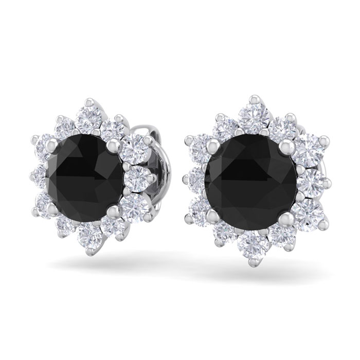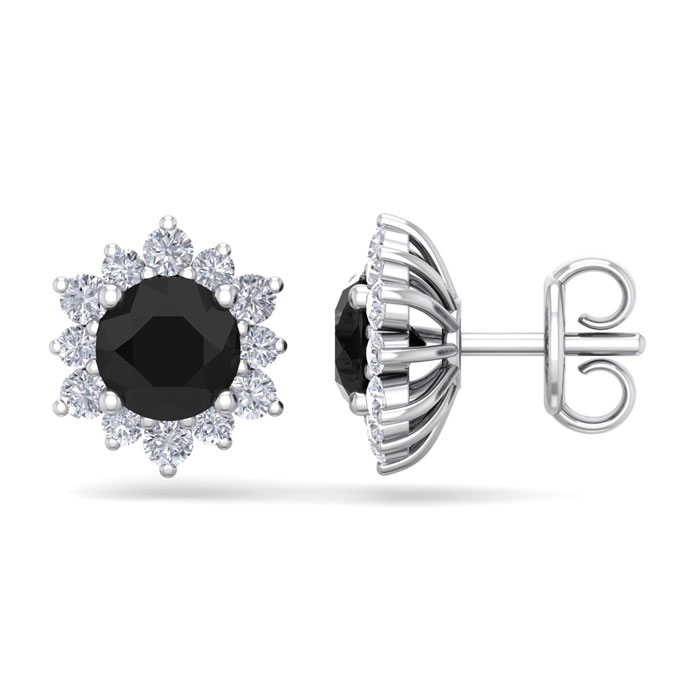 2 Carat Round Shape Flower Black Diamond Halo Stud Earrings In 14 Karat White Gold