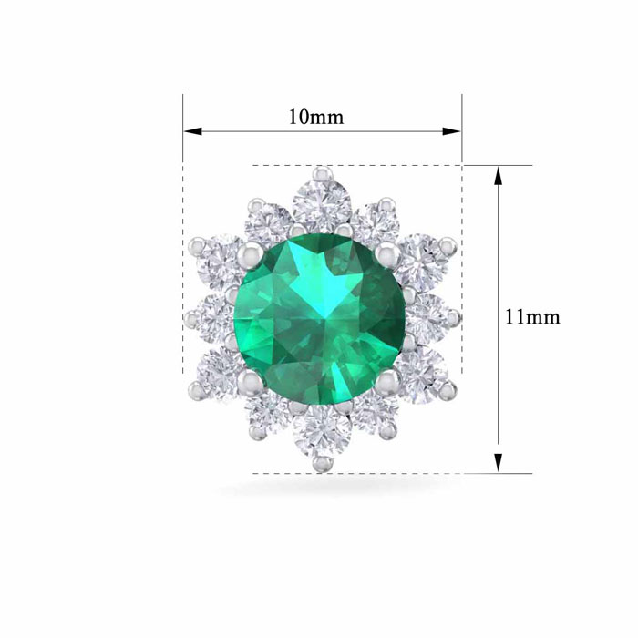 2 Carat Round Shape Flower Emerald and Diamond Halo Stud Earrings In 14 Karat White Gold