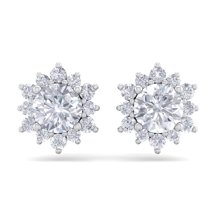 2 Carat Natural Round Shape Flower Halo Diamond Stud Earrings In 14 Karat White Gold
