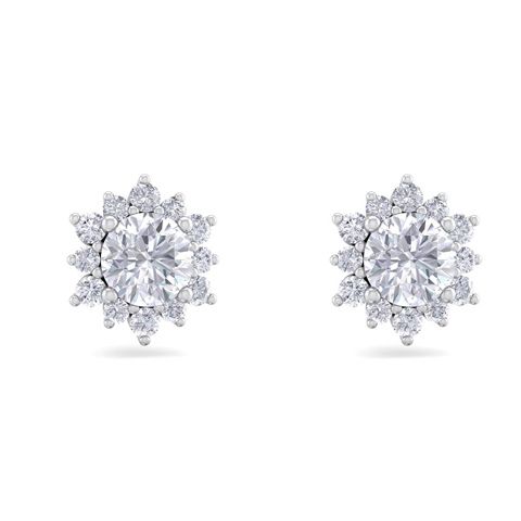 2 Carat Round Shape Flower Halo Moissanite Stud Earrings In 14 Karat White Gold