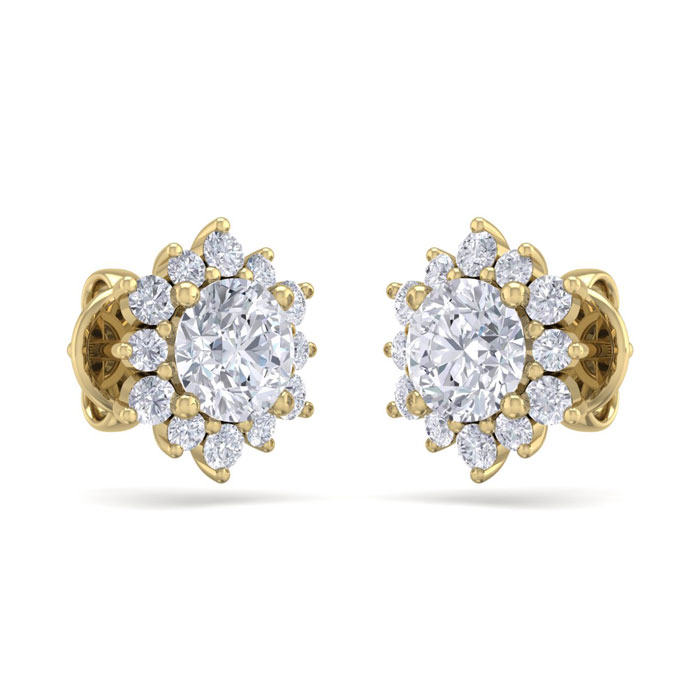 2 Carat Round Shape Flower Halo Moissanite Stud Earrings In 14 Karat Yellow Gold