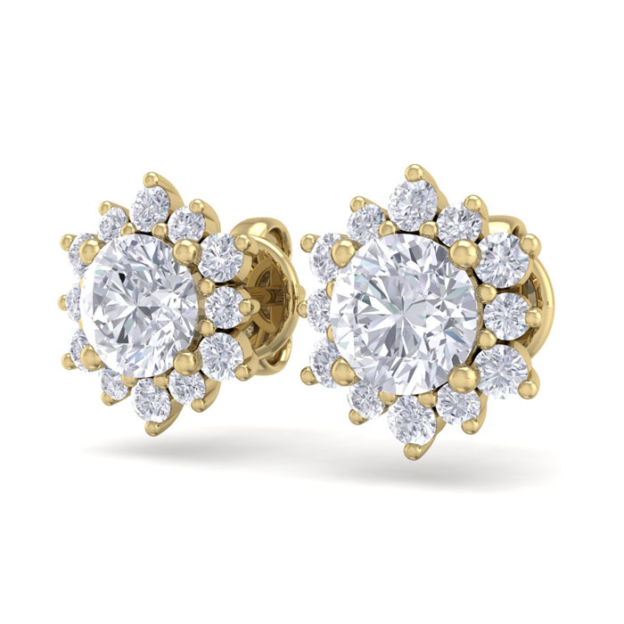 2 Carat Round Shape Flower Halo Moissanite Stud Earrings In 14 Karat Yellow Gold