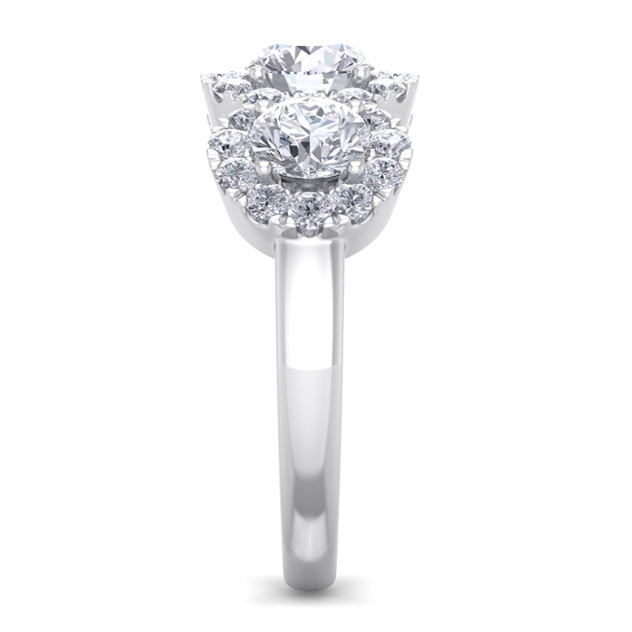 2 Carat Round Shape Halo Diamond Three Stone Ring In 14K White Gold