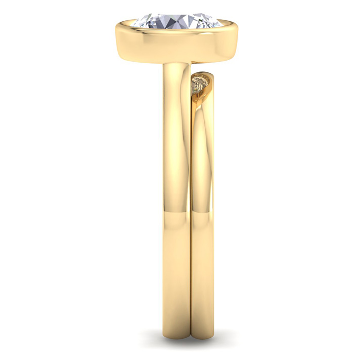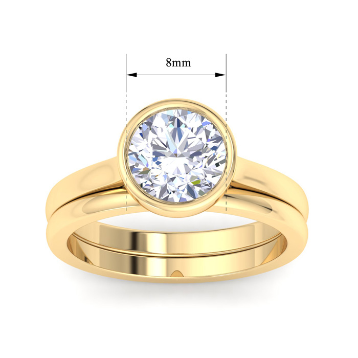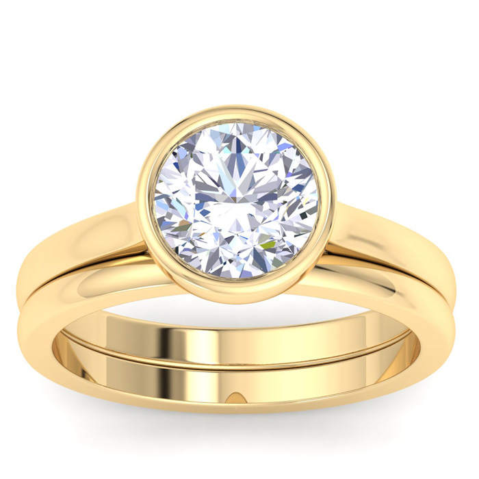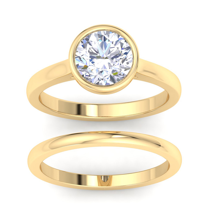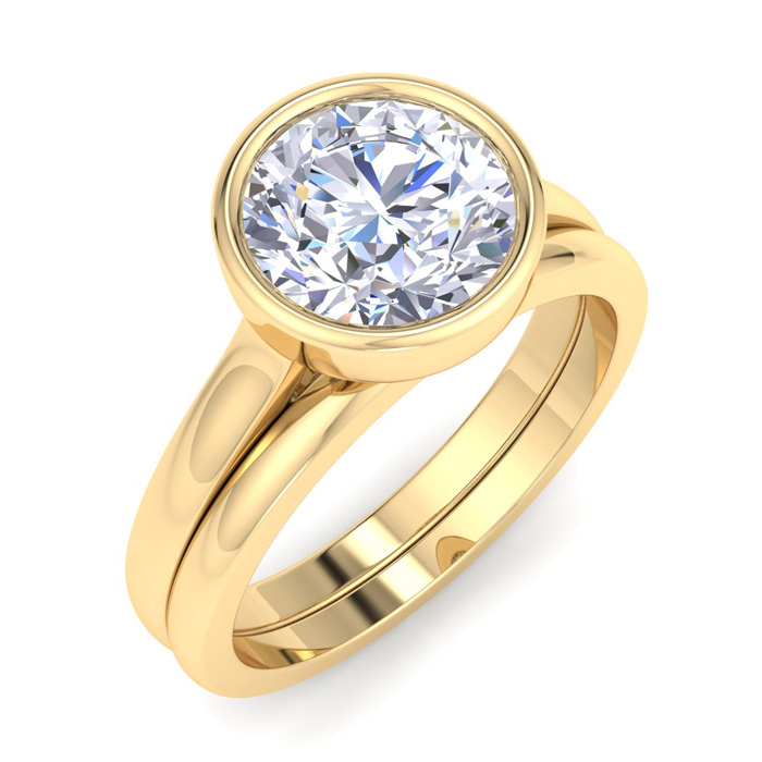 2 Carat Round Shape Lab Grown Diamond Ring With Matching Band In 14K Yellow Gold, Solitaire Bezel Setting
