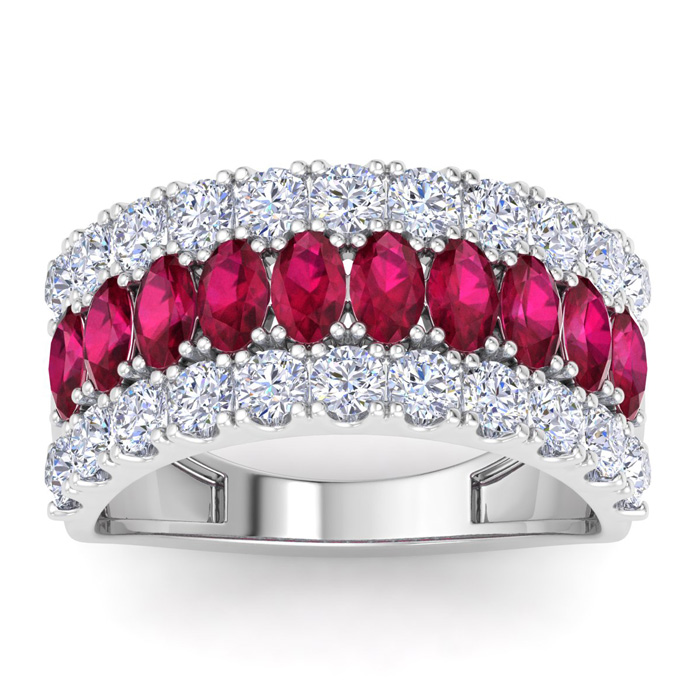 2 Carat Ruby and Lab Grown Diamond Band Ring In 14K White Gold