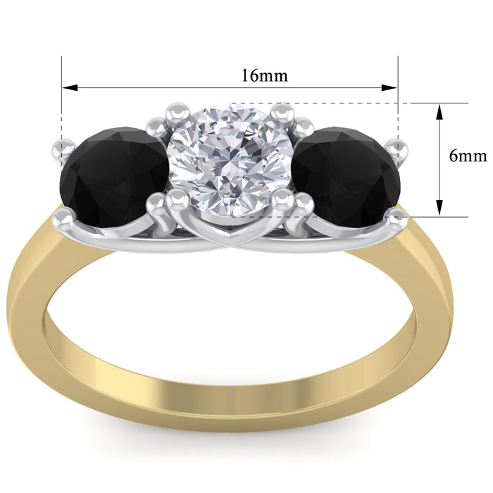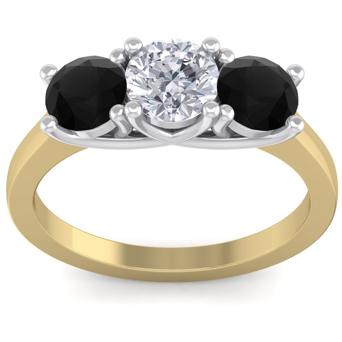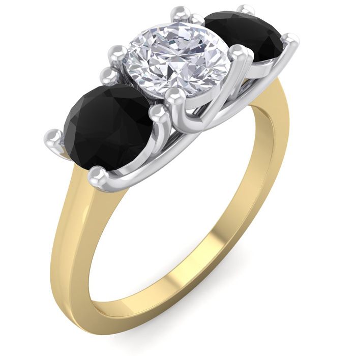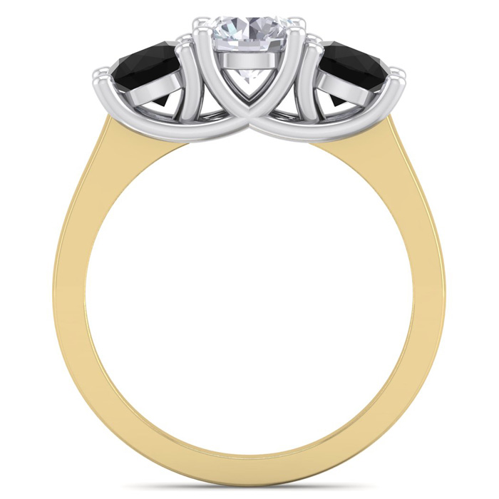 2 Carat White and Black Diamond Three Diamond Ring In 14 Karat Yellow Gold