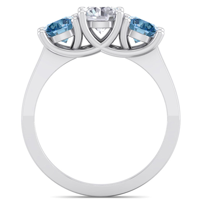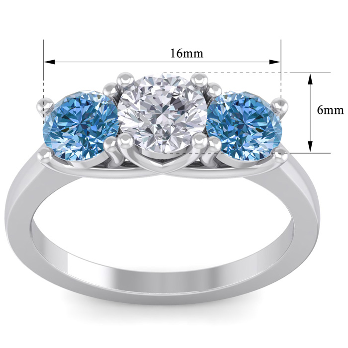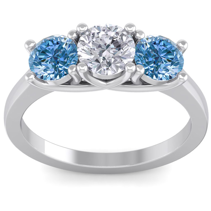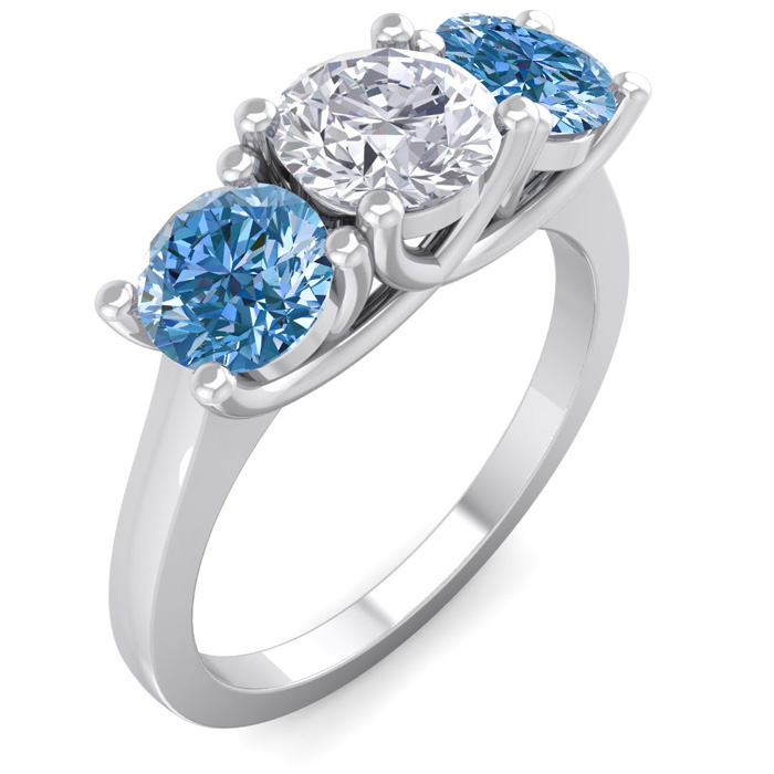 2 Carat White and Blue Diamond Three Diamond Ring In 14 Karat White Gold