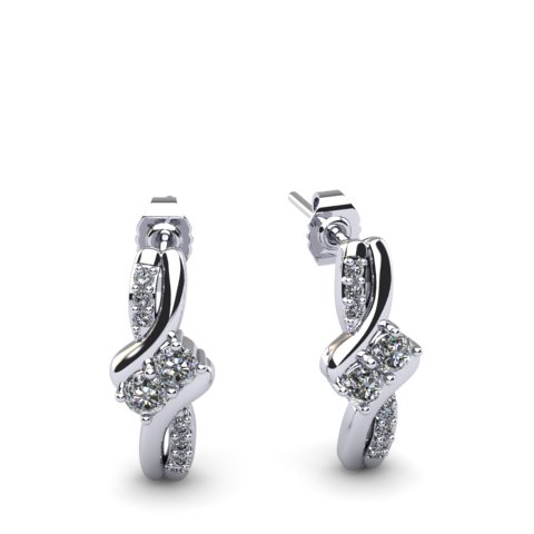This is a new classic style of our 2Be collection. Be Bonded Together in Love and show it with these pretty diamond earrings. Featuring beautiful I-J color fiery round brilliant diamonds of I1-I2 clarity, mounted in solid 14 karat white gold. There are 16 diamonds total in this earrings for a 0.26 total carat weight. Secure post with friction backs.