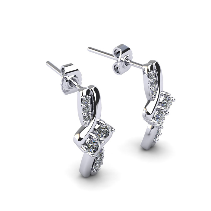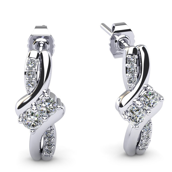This is a new classic style of our 2Be collection. Be Bonded Together in Love and show it with these pretty diamond earrings. Featuring beautiful I-J color fiery round brilliant diamonds of I1-I2 clarity, mounted in solid 14 karat white gold. There are 16 diamonds total in this earrings for a 0.26 total carat weight. Secure post with friction backs.