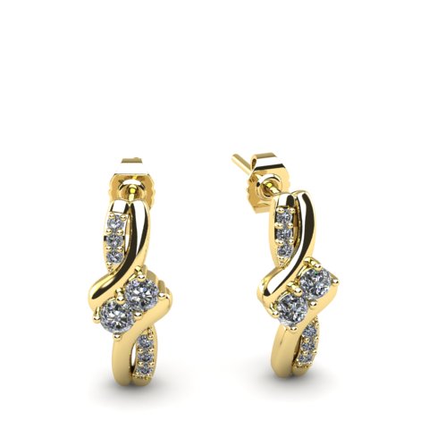This is a new classic style of our 2Be collection. Be Bonded Together in Love and show it with these pretty diamond earrings. Featuring beautiful I-J color fiery round brilliant diamonds of I1-I2 clarity, mounted in solid 14 karat yellow gold. There are 16 diamonds total in this earrings for a 0.26 total carat weight. Secure post with friction backs.
