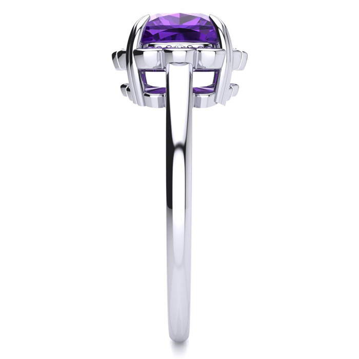 2ct Cushion Cut Amethyst and Diamond Ring in 10k White Gold