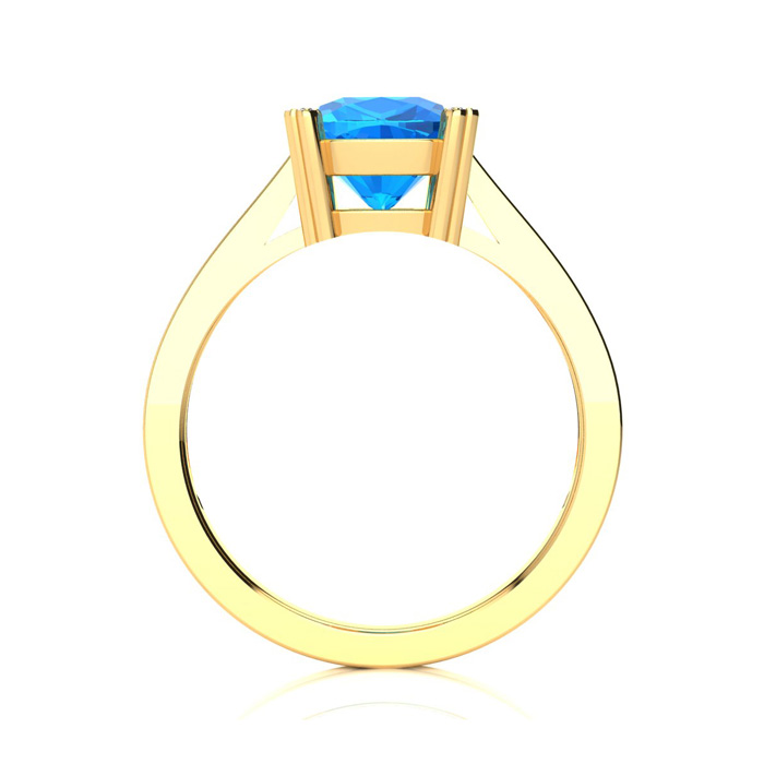 2ct Cushion Cut Blue Topaz and Diamond Ring in 10K Yellow Gold