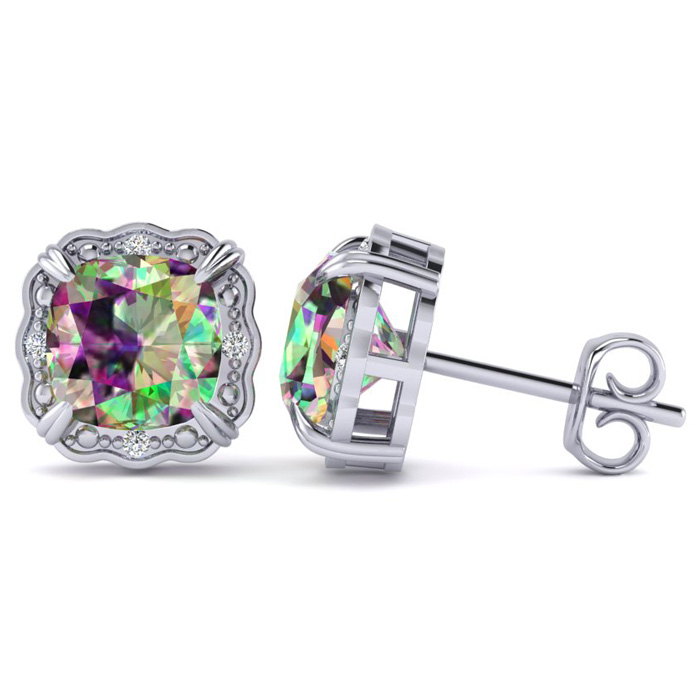 2ct Cushion Cut Mystic Topaz and Diamond Earrings in 10k White Gold