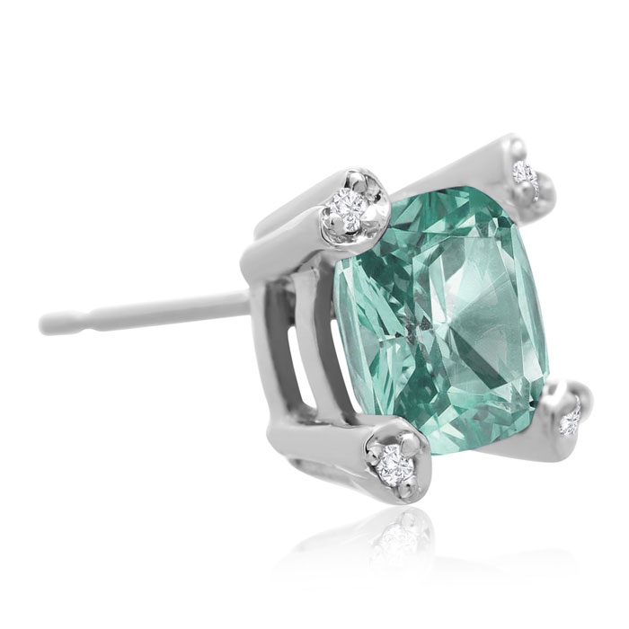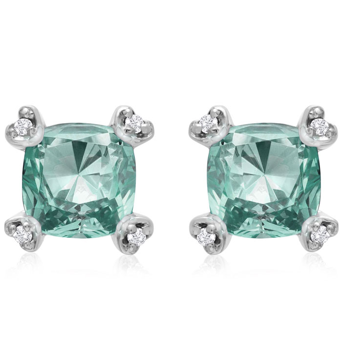 2ct Cushion Green Amethyst and Diamond Earrings in 10k White Gold