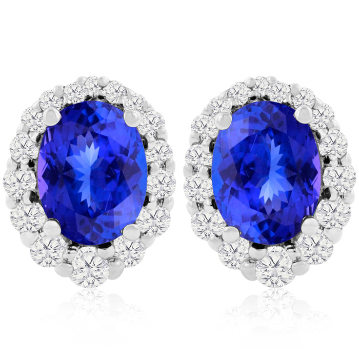 Our highest quality tanzanite and diamonds are set into a very fine 14 karat white gold mounting, creating a gorgeous pair of earrings. These tanzanite and diamond earrings are the type of jewelry that gets passed down from generation to generation. The diamonds are H-I color and SI2 clarity. The tanzanites are fine quality deep purplish blue.