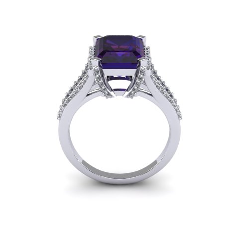 4 Carat Amethyst and Halo Diamond Ring In 14 Karat White Gold