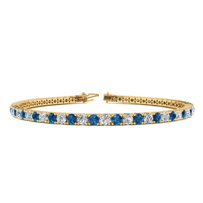 3 1/2 Carat Blue And White Diamond Mens Tennis Bracelet In 14 Karat Yellow Gold, 9 Inches