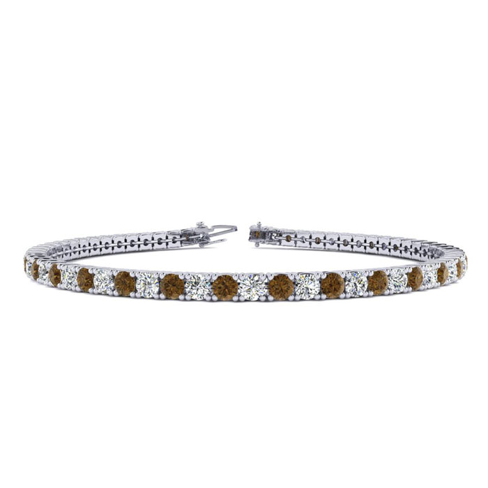 3 1/2 Carat Chocolate Bar Brown Champagne And White Diamond Mens Tennis Bracelet In 14 Karat White Gold, 9 Inches