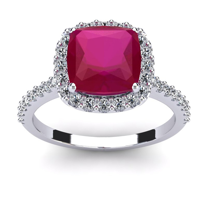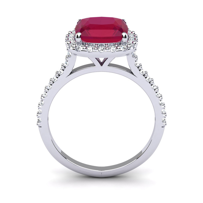 3 1/2 Carat Cushion Cut Ruby and Halo Diamond Ring In 14K White Gold