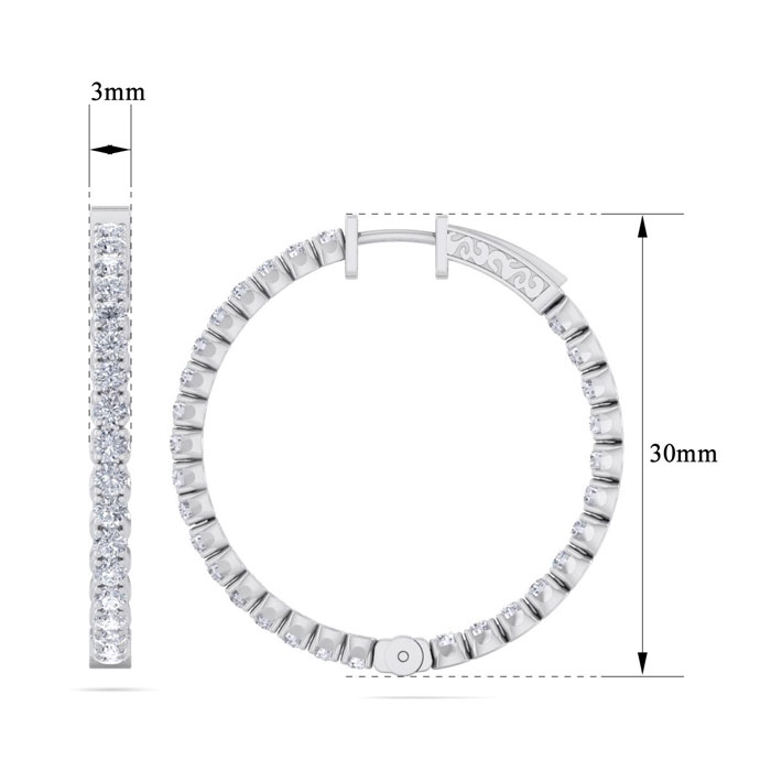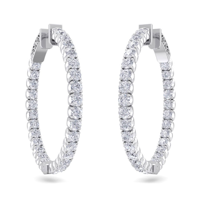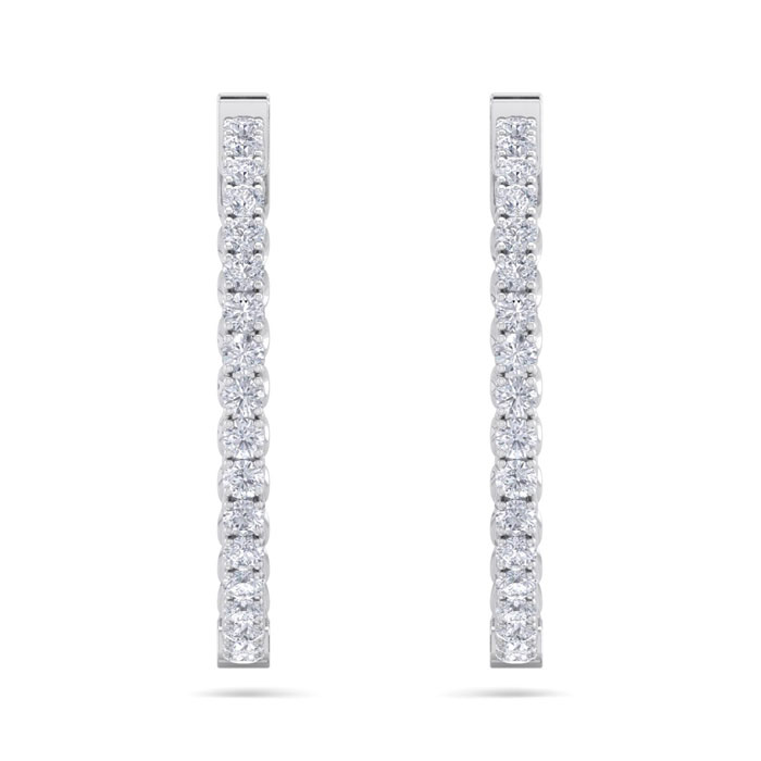 3 1/2 Carat Natural Diamond Hoop Earrings In 14 Karat White Gold, 1 Inch