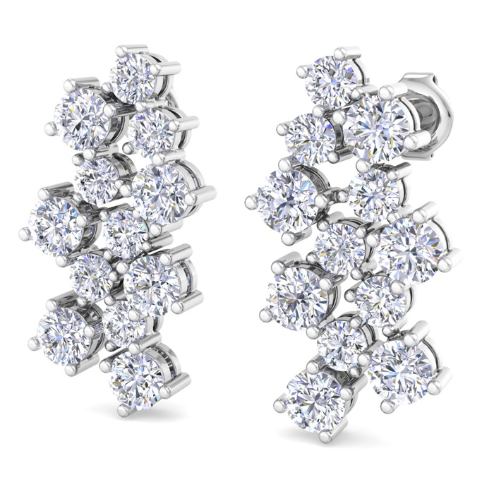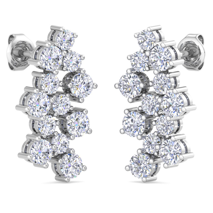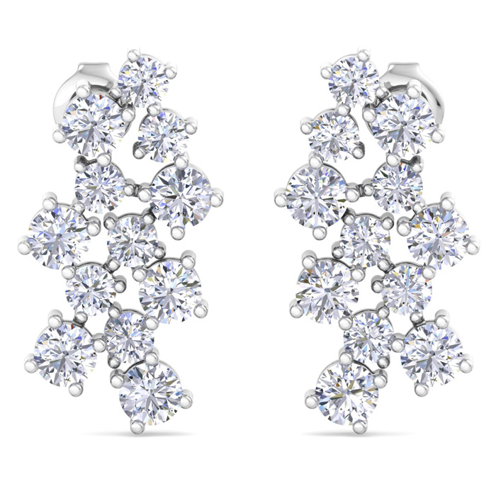3 1/2 Carat Lab Grown Diamond Cluster Drop Earrings In 14 Karat White Gold